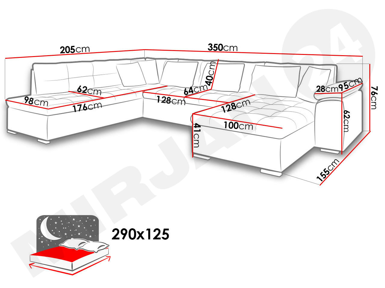 Sedací souprava je orientována na pravou stranu