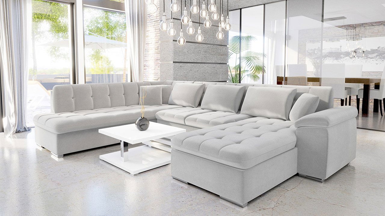 Rohová sedačka Tristan je vyrobena podle vzoru písmene „U“, které poskytuje spoustu místa k sezení. Kromě toho jde o volně stojící model s funkcí spánku pro dva. Sedačka má úložný prostor na ložní prádlo. Moderní charakter nábytku zdůraznil jednoduchý tvar a tvarované nohy stříbrné barvy.