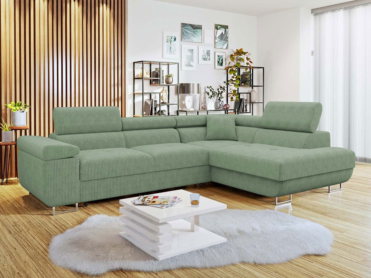 ZobrazitJedinečná rohová pohovka s funkcí spaní. Ideální k relaxaci před televizí s celou rodinou. Měl jste náročný den? Ideální rozměry vám umožní dlouho si zdřímnout na pohodlném odpočinku. Tato varianta se vyznačuje krásnými barvami a texturami. Zabalený do materiálu manšestrového typu dodá interiéru příjemnou a elegantní atmosféru. Model je rozkládací, takže získáte další prostor pro přenocování hostů. Kromě toho má prostornou nádobu na lůžkoviny. Je v ní místo pro přikrývky, polštáře a další předměty hodné uložení. Nastavitelné opěrky hlavy vám umožní správně sedět při čtení knihy nebo procházení sociálních sítí. Rohová pohovka na nožičkách je volně stojící. Své funkce bude dokonale plnit uprostřed obývacího pokoje. Bude vypadat úžasně a v místnosti vytvoří útulnou atmosféru. Tento stylový a vysoce funkční kus nábytku se rád zdomácní ve vaší domácnosti!