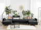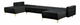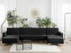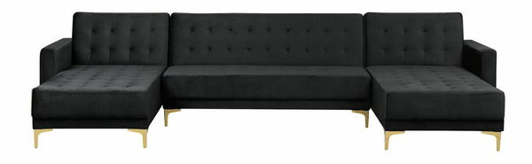 Modulární sedací souprava ve tvaru U je ideálním a skutečně univerzálním kusem nábytku do vašeho obývacího pokoje. Souprava se skládá z 3-místné pohovky a dvou bočních lehátek a díky nastavitelnému opěradlu ji lze jednoduše změnit na pohodlné lůžko. Tato souprava je celá čalouněná vysoce kvalitní a stylovou černou sametovou látkou s elegantním prošíváním a nabízí funkčnost i nadčasový styl. Celá sestava je stabilní díky kovovým nohám.