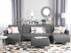 Modulární sedací souprava ve tvaru U s taburetem je ideálním a skutečně univerzálním kusem nábytku do vašeho obývacího pokoje. Souprava se skládá z 3-místné pohovky a dvou bočních lehátek a díky nastavitelnému opěradlu ji lze jednoduše změnit na pohodlné lůžko. Tato souprava je celá čalouněná vysoce kvalitní a stylovou šedou látkou s elegantním prošíváním a nabízí funkčnost i nadčasový styl. Celá sestava je stabilní díky kovovým nohám.