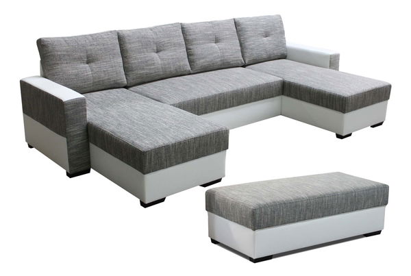 Rohová sedačka s moderním designem se bude skvěle vyjímat ve Vašem obývacím pokoji. Kombinace ekokůže a látky je příjemná na sezení a elegantní na pohled. Tmavé plastové nohy dotvářejí celkový design sedačky. Pohodlné sezení zaručují pružinové matrace. Sedačka je nerozkládací, spací plocha vznikne přisunutím taburetky, která je v ceně sedačky. Na výběr máte z několika barevných provedení.
