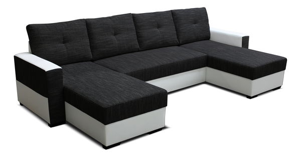 Pěkná moderní rohová sedací souprava ve tvaru do U, která má jednoduchý design a hodí se do jakýchkoliv interiérů. Sedací souprava je potažena látkou a koženkou. Vnitřek sedací soupravy je vyplněn pur pěnou a vlnitými pružinami. Sedací souprava je pevná a nedá se rozložit. Prostor na sezení a odpočinek lze zvětšit přisunutím širší taburetky. Připojením taburetky vytvoříte plochu na přespání. Na výběr je více barevných provedení. Levé provedení sedací soupravy.