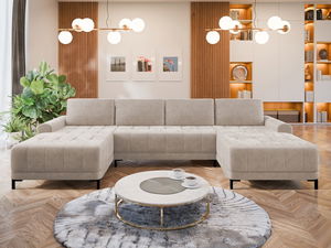 ZobrazitRohová sedací souprava je ideální volbou pro ty, kteří hledají pohodlí a styl. Design rohové sedačky Bonezi XL s funkcí spánku dokonale zapadá do nejnovějších trendů a nadchne svojí jednoduchostí a elegancí. Čalounění v neutrálním odstínu je skvělým základem pro vytváření různých aranžmá. Rohová sedačka do obývacího pokoje má nízké opěradlo v podobě polštářů a područky s minimalistickým vzhledem. Celé to stojí na tenkých, černých nožičkách. Prostorná rohová sedačka navržená ve tvaru písmene U vás obklopí komfortem. Vytváří prostornou a útulnou relaxační zónu. Díky vestavěnému úložnému prostoru na lůžkoviny získáte další úložný prostor. Rozkládací rohová sedačka nabízí prostornost a pohodlí jak pro každý den, tak i při speciálních příležitostech. Rozměry: délka: 337 cm, šířka: 168 cm, výška: 92 cm, plocha na spaní: 298 x 124 cm rozměry úložného prostoru: délka: 130 cm, šířka: 62 cm, výška: 20 cm Rohová strana: symetrická Provedení: konstrukce: borové5 mm hrubá laminovaná deska, sedák a opěradlo: T2837 pěna, tloušťka 10 cm + vlnová pružina "typ A", rozkládací rohová pohovka, automatický rozkládací stroj, má funkci spánku, úložný prostor, nohy: kov + černý plast, opěradlo ve formě pohyblivých polštářů, polštáře pohovka (záda potažená látkou) Záruka: 24 měsíců