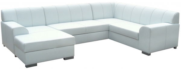 Krásná designová rohová sedačka do tvaru písmene U v provedení levý roh s výrazným svislým prošíváním dodávajícím dominantní ucelený tvar. Sedačka je rozkládací a úložný prostor se nachází v rozkládacím rohu, po rozložení se vytvoří rozměrná plocha na spaní o rozměru 268 cm délka a 132 cm šířka. Sedák je vyroben z pružiny, čímž je zaručen komfort měkkého sezení a tvarová trvanlivost sedačky. Výška sezení je 43 cm a hloubka sezení je 67 cm a sedačka stojí na šedých nožkách. Provedení je koženka bílá - Madryt 120.
