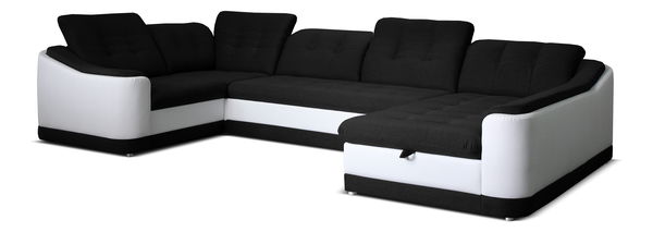 Dopřejte si dostatek pohodlí v obývacím pokoji s touto krásnou moderní rohovou sedací soupravou ve tvaru U. V designu této sedací soupravy dominují zaoblené tvary a kombinace koženky s látkou. Sedací souprava se vyznačuje i svými praktickými funkcemi. Sedačka má výškově nastavitelné opěrky hlavy pro dostatečné pohodlí při sledování oblíbeného seriálu nebo během chvil odpočinku. Sedací souprava se dá jednoduše rozložit a získáte tak plochu na pohodlné přespání. Úložný prostor sedací soupravy využijete pro uložení ložního prádla a dalších doplňků. Pravé provedení sedací soupravy.