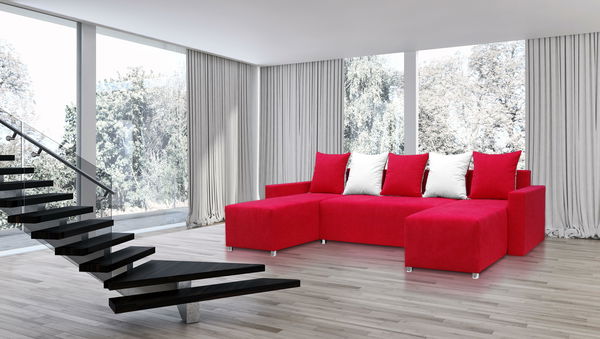 Rohová sedací souprava U Briston U s opěrkami (červená + polštáře)