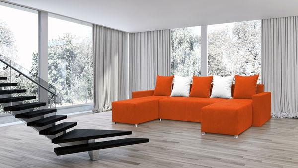 Rohová sedací souprava U Briston U s opěrkami (tmavě oranžová + polštáře)