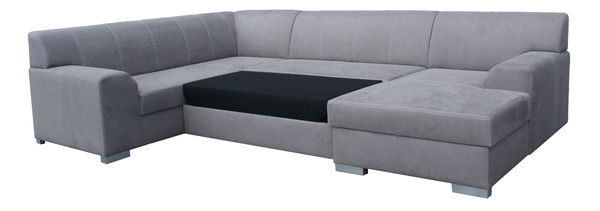 Rohová sedací souprava do tvaru U s úložným prostorem a rozkládacím na příležitostné spaní. Pružinové jádro pohovky zaručují pohodlné sezení. Možnost výběru pravého nebo levého provedení.