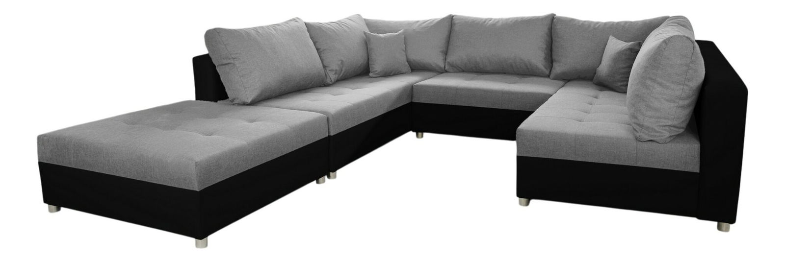 Rohová sedací souprava U Deron (s taburetem) (L) (šedá + černá)