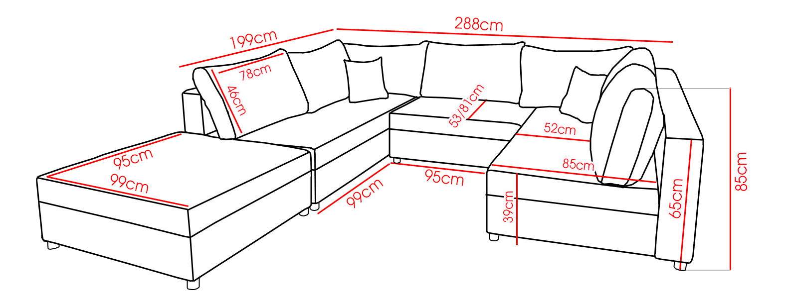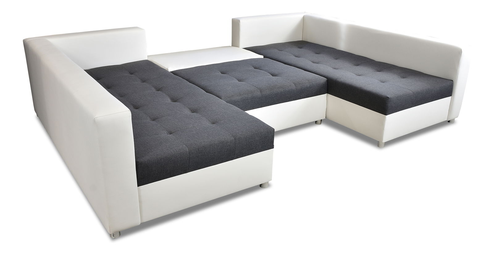 ZobrazitRohová sedačka je pohodlná a stylová ve tvaru písmene U, kde si celá rodina najde místo. Zadní část sedačky je také čalouněná ekokůží, která vám dává možnost umístit ji do kterékoli části místnosti. Výplň sedáku je kombinací vlnité pružiny a vysoce pružné pěny T2844 - jedinečná kombinace vytvořena s cílem poskytnout vám ještě větší pohodlí. Sedačka se rychle a snadno změní na ložnicový nábytek a to jen rozložením sedadla, které je umístěno nad úložným prostorem, pak budou rozměry na spaní 275x110 cm nebo zatlačením nejdelší části, která dokonale zapadá do zbytku sedačky, díky čemuž získáme rozměry 275x180 cm. Tento prostor na spaní zaručuje pohodlný spánek pro dvě nebo dokonce tři osoby. Velké zadní polštáře se přizpůsobují vaší postavě a zabezpečují pohodlný odpočinek po náročném pracovním dni.