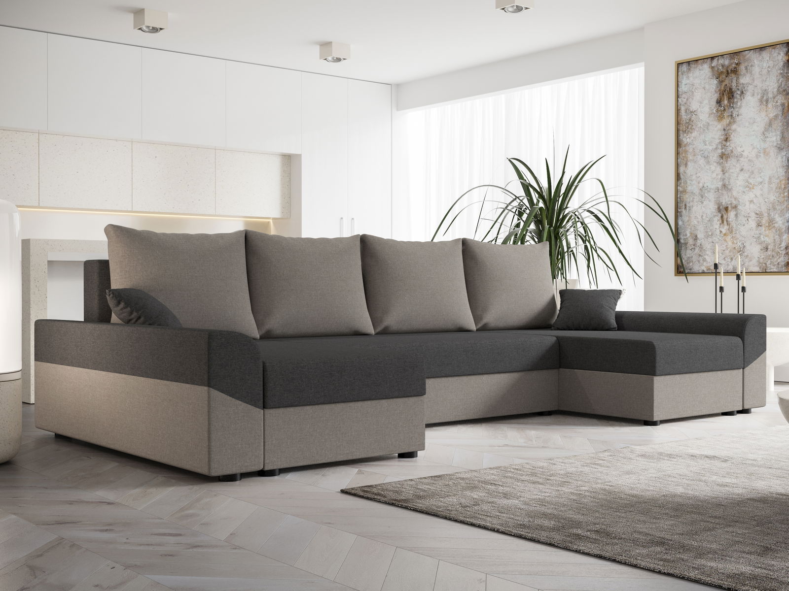 Rohová sedací souprava U Dusk U (černá + šedá)