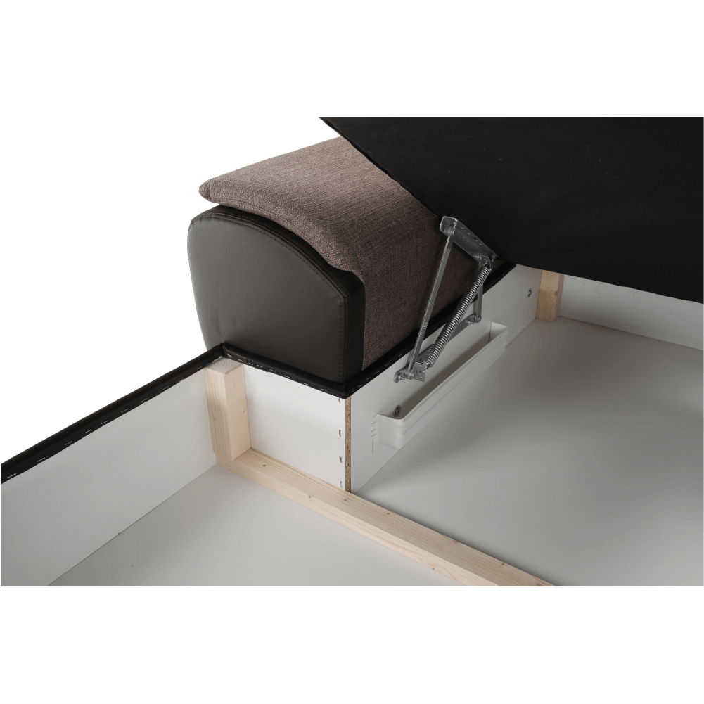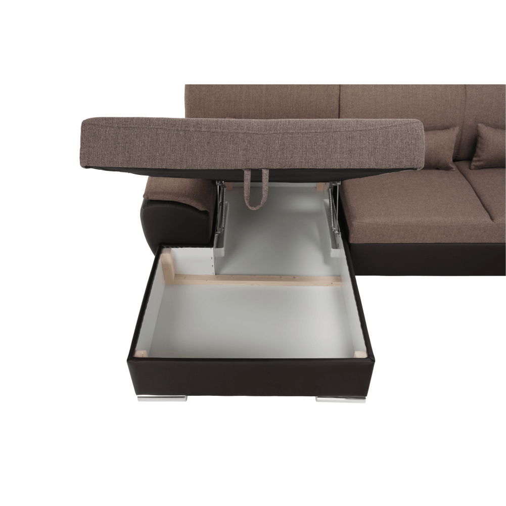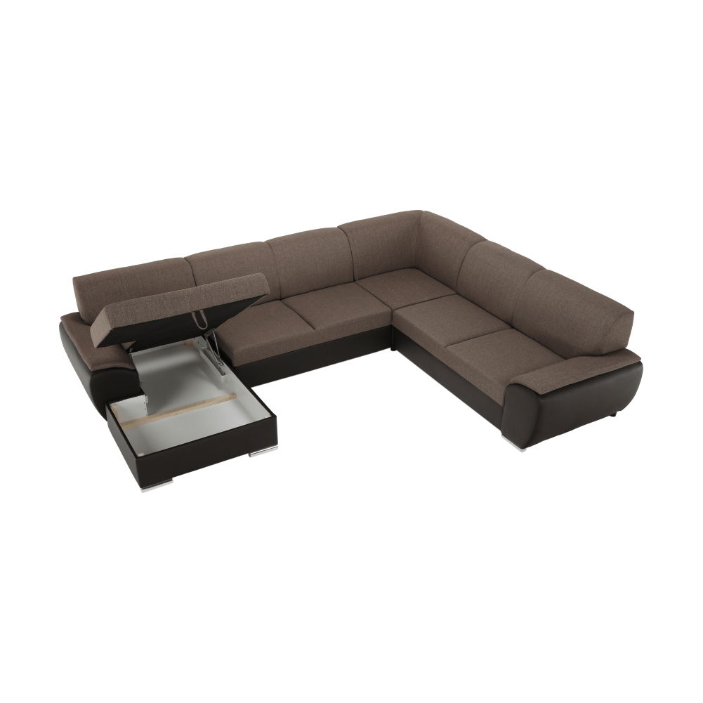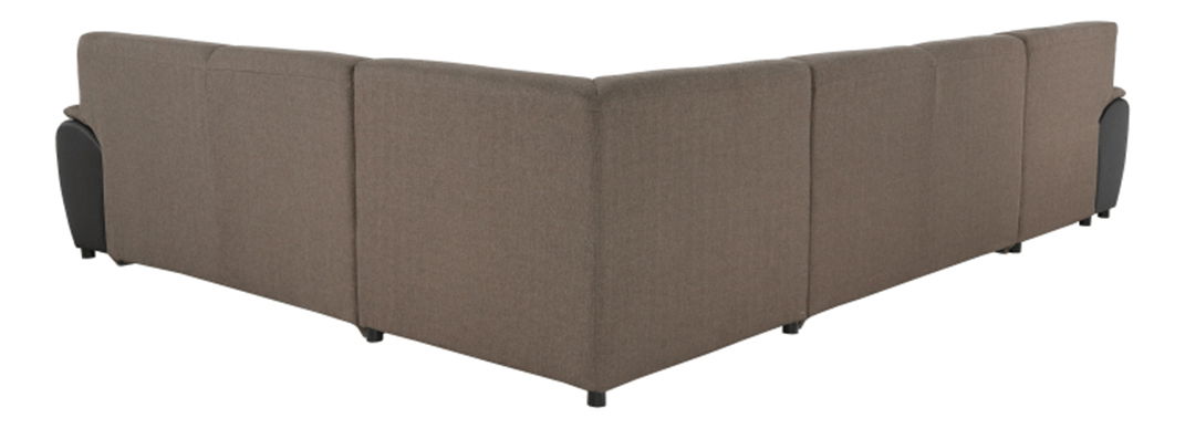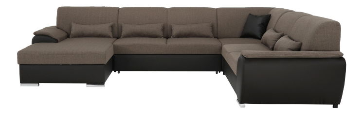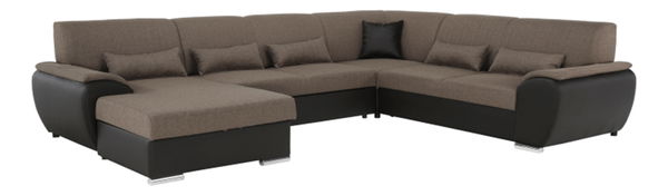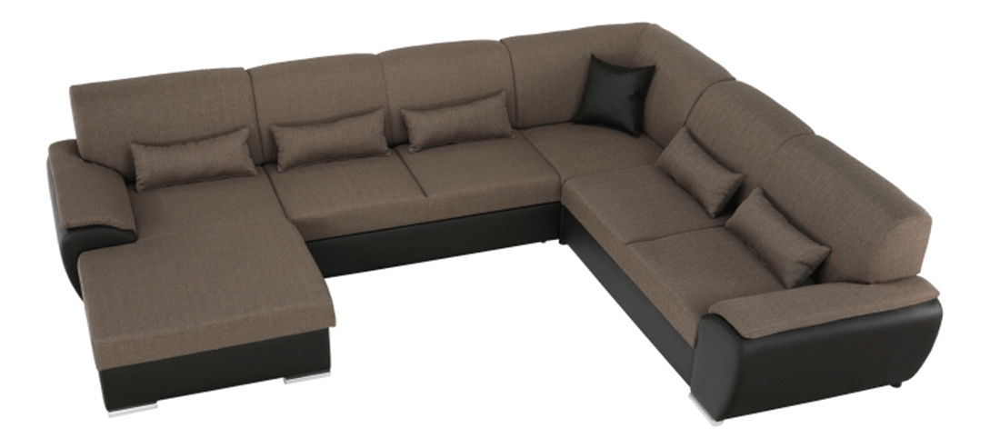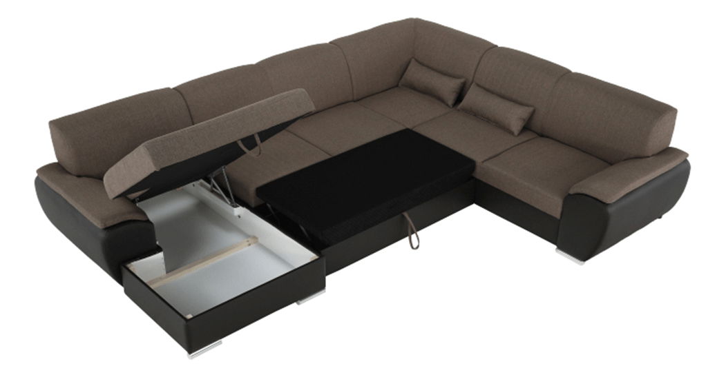 Elegantní celočalouněná rohová rozkládací sedací souprava Emily U z hnědé ekokůže v kombinaci s látkou Portland vám zaručí pohodlí ve vašem obývacím pokoji. Po rozložení získáte zároveň plochu na spaní.