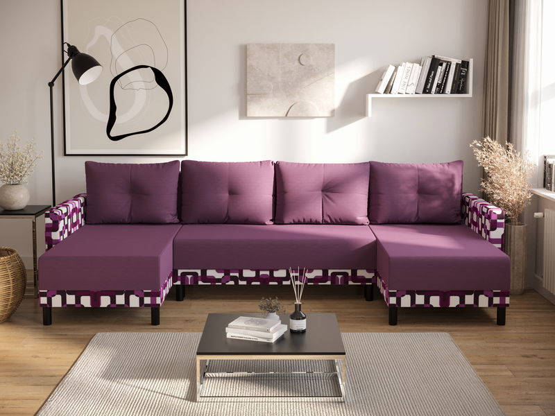 Rohová sedací souprava U Glimmer U (černá + vícebarevné)