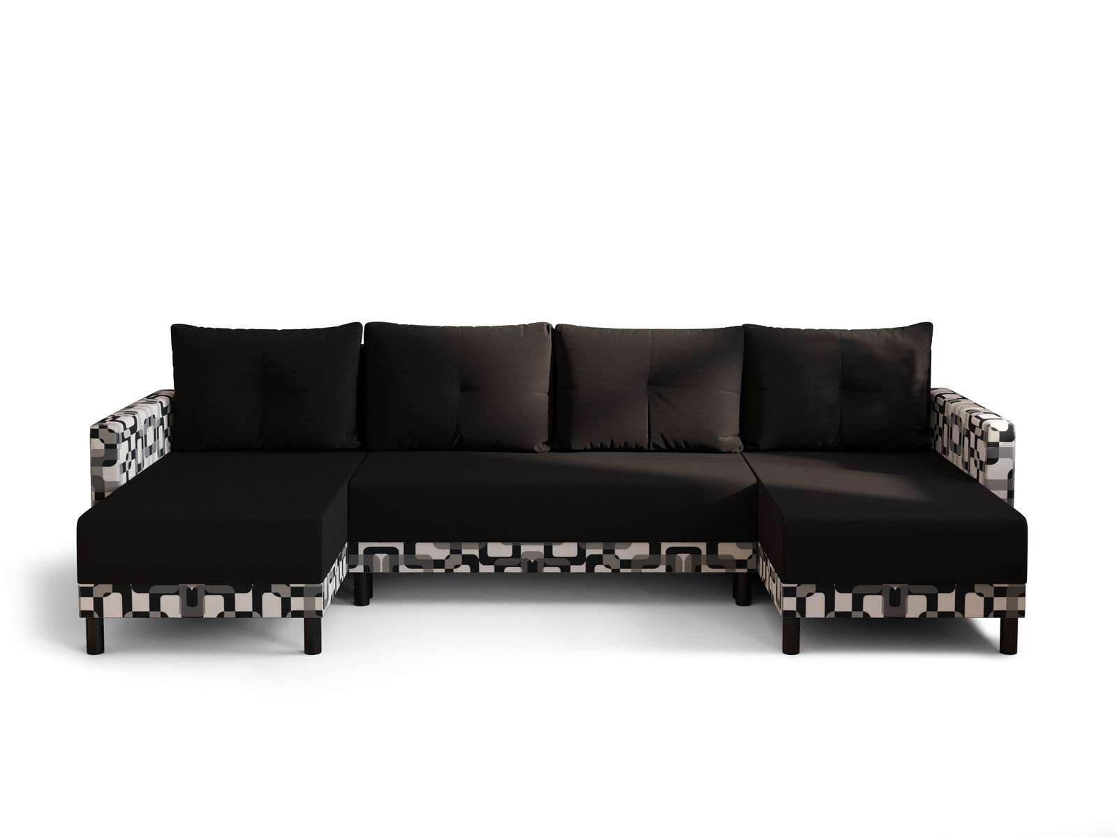 Rohová sedací souprava U Glimmer U (černá + vícebarevné)
