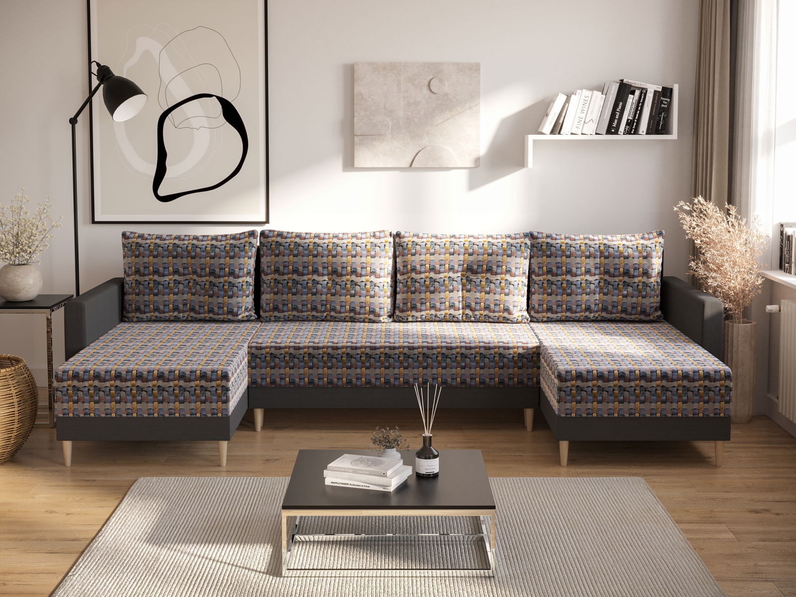 Rohová sedací souprava U Glimmer U (tmavě hnědá + béžová)
