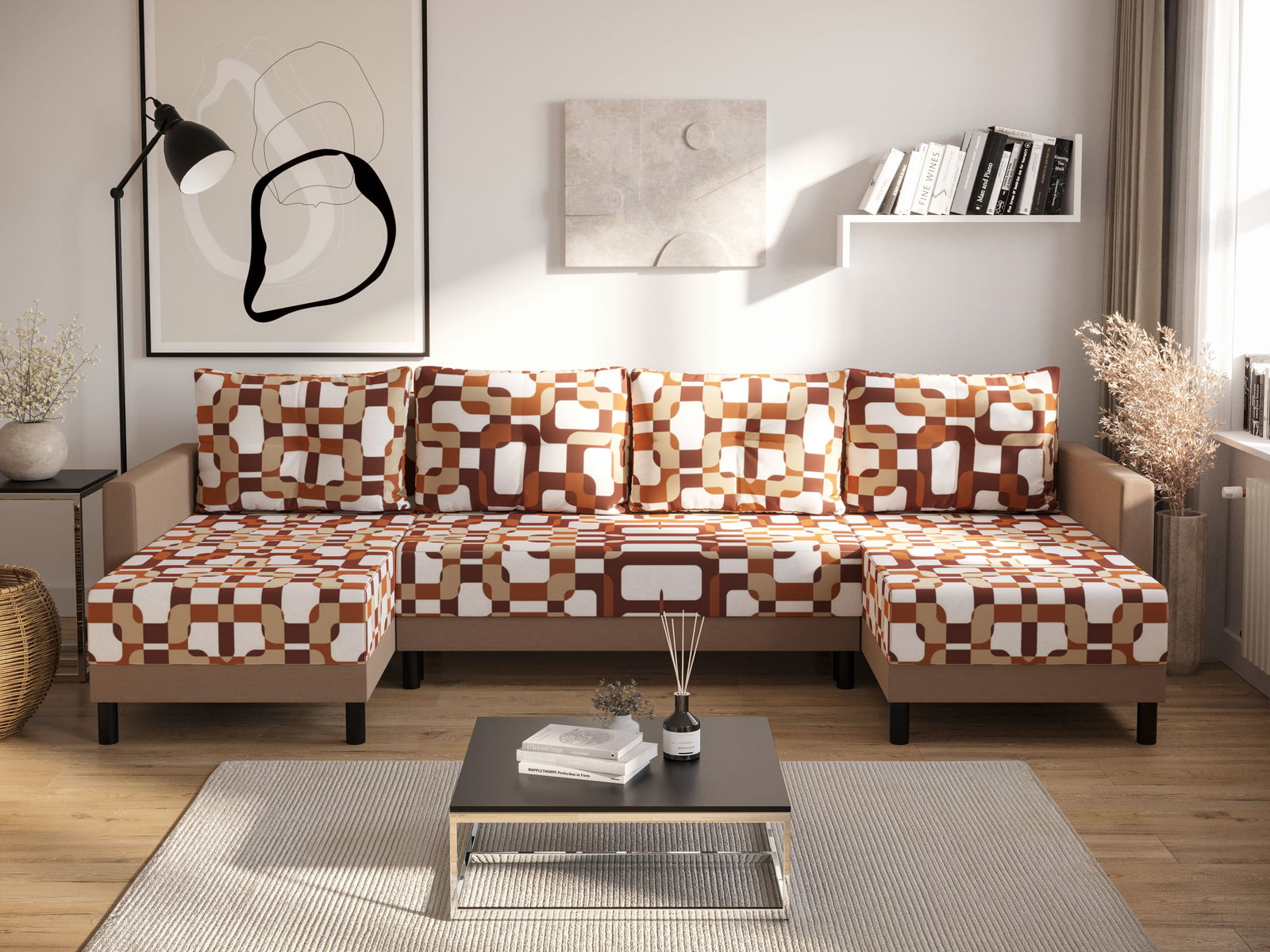 Rohová sedací souprava U Glimmer U (tmavě hnědá + vícebarevné)