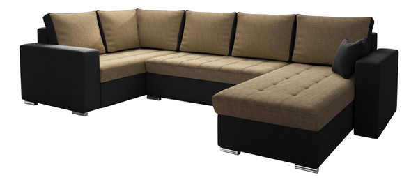 Rohová sedačka U Lambert (béžová + černá) (L) vysoká 89 cm a hluboká 170 cm je ideální pro velký obývací pokoj. Dvoubarevné provedení dodává sedací soupravě svěžest a moderní vzhled. Sedačka přichází se šesti velkými polštáři pro pohodlné opření se a širšími opěrkami rukou pro pohodlí. Konstrukce je vyrobena z masivního dřeva, dřevotřísky, dřevovláknité desky a překližky. Výplní jsou polyuretanové pěny a sedačka má rozměr 271 x 125 cm pro spaní dvou osob. Sedačka má také dva samostatné úložné prostory a stojí na nízkých kovových zaoblených nožičkách. Tkanina Sawana má jemnou strukturu a vysokou odolnost, skvěle se hodí pro čalounění pohovek a postelí. Sedačka se skládá ze čtyř balíků a má celkovou hmotnost 153 kg. Rohová sedačka U Lambert je skvělou volbou pro pohodlí a moderní vzhled vašeho interiéru.