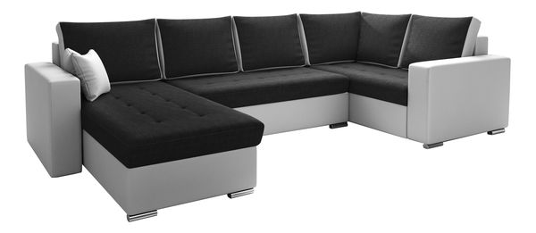 Rohová sedačka U Lambert (černá + bílá) (P) o výšce 89 cm a hloubce 170 cm je ideální volbou pro velké obývací pokoje. Její moderní design s dvoubarevným provedením vám dodá svěžest a přátelskou atmosféru. Tato pohodlná sedací souprava má širší opěrky rukou po bocích ak ní přísluší šest velkých polštářů pro pohodlné opření se. Konstrukce s masivním dřevěným rámem stojí na nízkých kovových zaoblených nožičkách a disponuje dvěma samostatnými úložnými prostory. Sedačka je také rozkládací a sklopením zadního čela se vytvoří prostor pro spaní pro dvě vysoké osoby. Sedačka je vyplněna polyuretanovou pěnou o hustotě 25 kg/m³ - T2544 a tkanina Sawana s gramáží 340g/m +/-5 % a testem oděruvzdornosti Martindale s 45 000 cykly je použita na čalounění. K sedačce patří také ekokůže Mandarin MA s gramáží 440g/m³ a testem oděruvzdornosti Martindale s 30 000 cykly. Tento materiál je měkký, flexibilní, odolný a barvostálý. Sedačka je balena do čtyř balíků o celkové hmotnosti 153 kg.