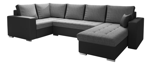 Rohová sedačka U Lambert (šedá + černá) (L) vám poskytne pohodlí a celá vaše rodina se usadí v ní s lehkostí. Sedačka má moderní design s dvoubarevným provedením, které dodává svěžest vašemu interiéru. K sedačce jsou přiloženy šest velkých polštářů pro pohodlné opření a širší opěrky rukou po bocích jsou velmi pohodlné. Sedačka má také dva samostatné úložné prostory a může být rozložena pro spaní dvou vysokých osob. Sedačka stojí na nízkých kovových zaoblených nožičkách a její konstrukce zahrnuje masivní dřevo, dřevotřísku, dřevovláknitou desku a překližku. Výplň je vyrobena z polyuretanové pěny o hustotě 25 kg/m³ - T2544. Rozměr mezi levou a pravou částí je 136 cm a výška sezení je 40 cm. Sedačka je balena do čtyř balíků a tkanina Sawana je odolná s gramáží 340g/m +/-5%. Test oděruvzdornosti Martindale je 45 000 cyklů. Tkanina MA - ekokůže Mandarin je kvalitní imitací pravé kůže a její gramáž je 440g/m³. Test oděruvzdornosti Martindale je 30 000 cyklů.