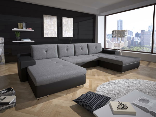 Moderní rohová sedačka U Marlon ve tvaru „U“ v šedém a černém provedení poskytuje skvělý design pro náročného zákazníka. Sedačka je vyrobena z kvalitních materiálů, které zaručují dlouhou životnost. Dvoubarevná kombinace tkaniny a ekokůže dodává sedačce styl a moderní vzhled. Čtyři velké polštáře zajišťují pohodlné sezení. Široké opěrky rukou mohou sloužit také jako odkládací prostory. Sedačka disponuje jedním úložným prostorem a lze ji rozložit na lůžko na spaní. Konstrukce stojí na nízkých kovových nožičkách. Tkanina Sawana je lehká a odolná s jemnou strukturou vhodná pro čalounění pohovek a postelí. Ekokůže Mandarin MA je měkká, flexibilní a barvová stálá s imitací pravé kůže. Balení obsahuje tři balíčky. Tato rohová sedačka U Marlon je ideálním kouskem pro váš obývací prostor.