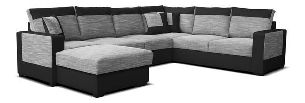 Prostorná rohová sedací souprava ve tvaru do U, která vám zajistí dostatek komfortu a zároveň bude krásným moderním doplňkem ve vašich obývacích pokojích. Sedací souprava je potažena koženkou a látkou. Velké polštáře, které slouží jako opěradla, mají v horní části koženkový pás. Sedací souprava je rozkládací a po jejím rozložení vytvoříte pohodlnou plochu pro příležitostné spaní. V sedací soupravě se nachází i úložný prostor, do kterého si umíte uložit ložní prádlo a další doplňky. Levé provedení sedací soupravy.