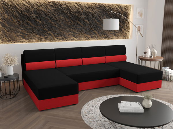 Rohová sedací souprava U Radiant U1 (černá + červená)