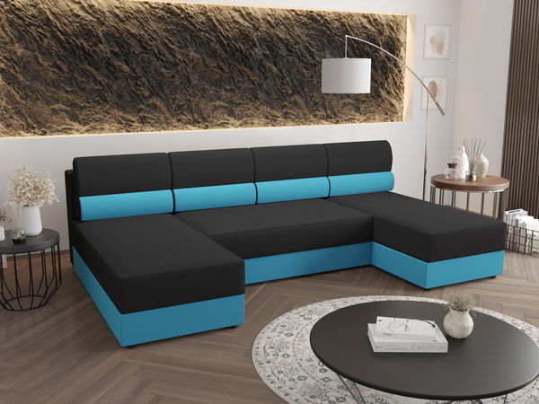 Rohová sedací souprava U Radiant U1 (černá + tyrkysová)