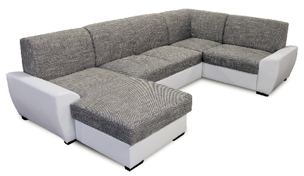 Moderní rohová sedačka do tvaru písmene U, skvěle vynikne v obývacím pokoji a dokonale se hodí k ostatnímu nábytku. Je celočalouněná koženkou a šenilem. Na výběr máte ze tří barevných provedení: bílá + šedá, černá + šedá, hnědá + světlehnědá. Jednoduchým pohybem ji rozložíte, čímž vznikne velká plocha spaní, na které se pohodlně vyspí i dvě osoby.