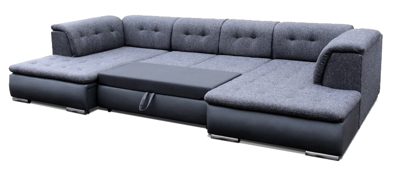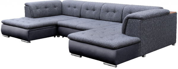 Designová rohová sedačka Santiago univerzálního typu stojící na kovových chromových nožkách působí dominantním uceleným dojmem a hodí se do každé obývací místnosti. Sedačka je rozkládací s úložným prostorem, po rozložení se vytvoří rozměrná plocha na spaní o rozměru 282 cm délka a 145 cm šířka. Sedák je vyroben z pružiny, čímž je zaručen komfort měkkého sezení a tvarová trvanlivost sedačky. Vrchní část jednoho rohu opěrky je vybavena rovnou pevnou plochou dodávanou v tmavém odstínu. Provedení je koženka Madryt 1100 černá v kombinaci se šedým šenil Portland 90. Na výběr jsou i jiné barevné kombinace odstínů.