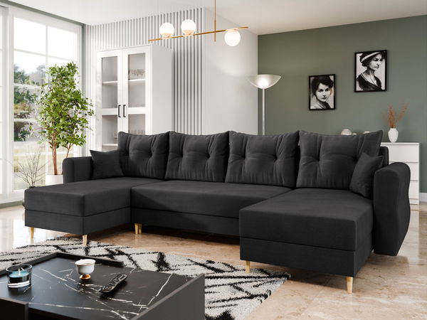 ZobrazitRohová sedací souprava je ideální volbou pro ty, kteří hledají pohodlí a styl. Novou definici pohodlí přináší rohová sedačka Saniolan U s funkcí spánku! Zajímavá silueta jde ruku v ruce s praktičností. Sedačka ve tvaru U poskytuje velkou relaxační plochu a umožňuje vám volně pořádat setkání s přáteli nebo rodinou. Štíhlé vysoké nohy zvětšují strukturu rohové sedačky obývacího pokoje a dodávají jí optickou lehkost. Minimalistický tvar se hodí k různým interiérovým aranžmá. Rohová sedačka U má vestavěný úložný prostor. Toto příslušenství je mimořádně užitečné v jakémkoli prostoru. Rozměry: délka: 310 cm, šířka: 138 cm, výška: 85 cm, plocha na spaní: 274 x 132 cm, rozměry úložného prostoru: délka: 131 cm, šířka: 59 cm, výška: 24 cm Rohová strana: symetrická Provedení: rám: dřevo + 16 mm T30 + vlnová pružina "typ A", opěradlo: pěna T30, tloušťka 8 cm, rohová sedačka je rozkládací, má funkci spánku, úložný prostor, nohy: dřevo, opěradlo ve formě pohyblivých polštářů vyplněných mletou pěnou, polštáře v ceně - zapínané na zip, volná látkou) Záruka: 24 měsíců