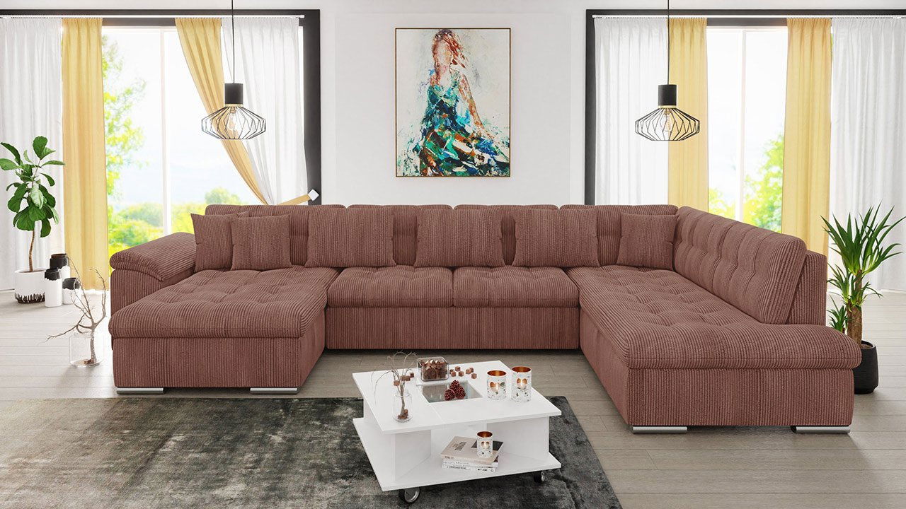 ZobrazitVelká rohová pohovka do obývacího pokoje je ideální volbou pro ty, kteří hledají pohodlí a styl. Ve svém bytě máte značný prostor, takže velká rohová sedačka do obývacího pokoje Tony je pro vás to pravé. Nabízí velký prostor pro spaní i pohodlný odpočinek během dne. Je vyroben z výjimečné látky, která obohatí váš prostor a učiní jej skutečně jedinečným. Rohová sedací souprava se vyznačuje solidním zpracováním. Kombinace krásného designu a funkčnosti. Je to rozkládací model opatřený polštáři na zip. Volně stojící varianta nabízí široké možnosti uspořádání. Jeho tvar připomíná písmeno "U". Díky bohaté barevné škále se hodí téměř ke každému stylu. Rozměry: délka: 348 cm, šířka: 205 cm, výška: 76 cm, povrch na spaní: 290 x 125 cm Rohová strana: levá nebo pravá Provedení: dřevěný rám + dřevotříska, vysoce elastická pěna vlnitá pružina, rozkládací rohová pohovka, funkce spánku, bez nádoby zip, volně stojící rohová pohovka (zadní část čalouněná látkou) Záruka: 24 měsíců