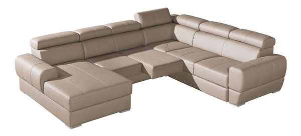 Rohová sedačka Veneros ve tvaru U s potahem z ekokůže se svým elgantným a jednoduchým designem hodí do každé moderní domácnosti. Opěrky hlavy se dají sklápět a tak si můžete udělat dokonalé pohodlí. Sedačka se dá rozkládat, takže je vhodná i na přespávání. Úložný prostor můžete využít k odkládání náhradních přikrývek, polštářů apod.