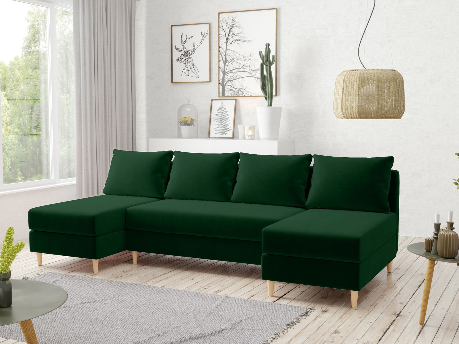 ZobrazitSedačka Veron ve tvaru U je minimalistickým a nadčasovým kouskem, který nabízí prostor a pohodlí pro celou rodinu. Se svojí konstrukcí ze dřeva a 18 mm nábytkové desky, Veron působí stabilně a pevně. Výplň sedáku a opěradla z bonellových pružin a pěny T 30 zajišťuje optimální komfort a podporu. Naturální dřevěné nožičky o výšce 10 cm doplňují jednoduchý, ale stylový vzhled sedačky. Hluboké sezení (50 cm s poduškami, 73 cm bez nich) a rozměrné opěrky na ruce (54x10x90 cm) vytvářejí útulné prostředí. Funkcionalita sedačky je zdůrazněna také její schopností rozložit se do spánkové plochy o rozměrech 270x140 cm a praktickým úložným prostorem v bílé barvě. Čalounění zadní strany a čtyři polštářky dokončují tento elegantní a univerzální nábytek.