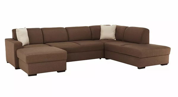 Moderní sedačka York se dvěma úložnými prostory na umístění povlečení a rozkladem na spaní. Je čalouněná šenilem hnědé barvy. Dva polštářky béžové barvy jsou v ceně. Sedačka se rozměry hodí do větší obývacího pokoje.