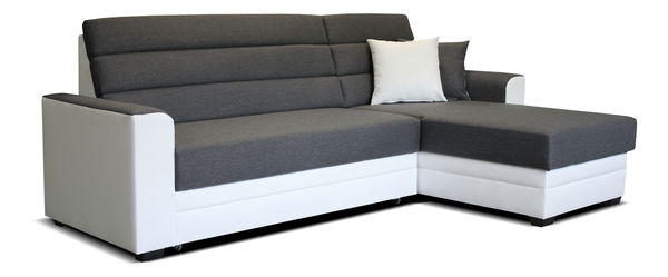 Obývacím pokojům dodáte moderní vzhled velmi jednoduše prostřednictvím této rohové sedací soupravy. Opěrná část má vodorovné ozdobné linie. Opěrky rukou jsou stylově zaoblené a dotvářejí přitažlivý design sedací soupravy. Sedací souprava je potažena koženkou a látkou. Pro získání plochy na spaní je možné sedačku rozložit. Také v sobě ukrývá praktický úložný prostor, do kterého pohodlně odložíte ložní prádlo. Sedací souprava je univerzální.