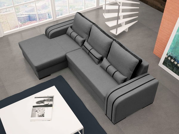 Designová sedačka, která se hodí zejména do moderních obýváků. Je čalouněná kvalitní látkou. Pruhy v kontrastní barvě oživují celou sedačku a dělají z ní nadčasový prvek v místnosti. Protože i zadní strana je čalouněná látkou, nemusíte ji mít umístěnou u zdi, ale můžete ji mít i volně v prostoru. Polštáře jsou odjímateľné, což se hodí zejména při rozkládání sedačky. Jednoduchým pohybem z ní dostanete lůžko na přespání. Po vyklopení otomanu se zjeví praktický úložný prostor na povlečení, polštáře.