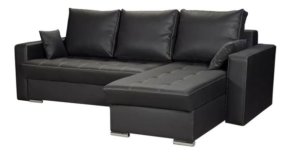 Rohová sedačka Valmero (černá) ve stylu basic je ideální volbou pro minimalistické domácnosti. Tato sedačka v jednobarevném provedení z ekokůže má tři velké polštáře na opření zad a dva malé dekorační polštářky. Sedák je zajímavě prošívaný a disponuje možností rozkladu a dvěma úložnými boxy. Sedačka má výšku 89 cm, hloubku 165 cm a sezení ve výšce 41 cm. Sedačka stojí na oblých kovových nožičkách, přičemž její konstrukce sestává z masivního dřeva, dřevotřísky o tloušťce 16 mm, dřevovláknité desky 3 mm a překližky. Výplň tvoří polyuretanová pěna se specifikací 28 kg/m³ - T2844. Plocha spaní má rozměry 200 x 135 cm. Sedačka je dodávána ve třech balících, přičemž každý má odlišné rozměry a váhu. Tento kus nábytku je oblečen v ekokůži Mandarin MA s gramáží 440g/m³ a testem oděruvzdornosti Martindale s výsledkem 30 000 cyklů. Ekokůže MA je kvalitní imitací pravé kůže, která je měkká, flexibilní, odolná a barvostálá. Čištění je jednoduché - stačí použít jemně navlhčený hadřík.