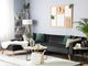 Tato rohová rozkládací pohovka se stane středobodem vašeho obývacího pokoje. Díky svěžímu minimalistickému designu a lehátku, které je umístěno na pravé straně z pohledu sedící osoby, se hodí k modernímu, tradičnímu a současnému stylu interiérového zařízení. Jemné sametové čalounění s ozdobnými knoflíky doplňují dřevěné nohy s přírodním vzhledem, které jí dodávají sofistikovaný retro nádech. Velkoryse vyplněná opěradla a sedadla zajišťují pohodlné sezení. Dodatečné polštáře nabízejí ještě větší pohodlí a oporu. Pohovku lze rozložit a vytvořit z ní komfortní postel na spaní.