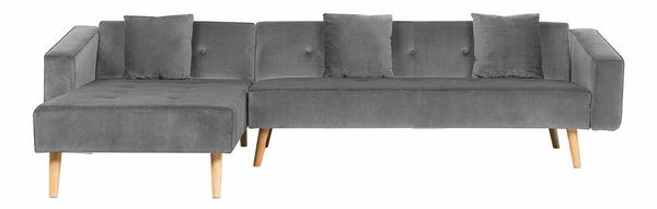 Tato rohová rozkládací pohovka se stane středobodem vašeho obývacího pokoje. Díky svěžímu minimalistickému designu a lehátku, které je umístěno na pravé straně z pohledu sedící osoby, se hodí k modernímu, tradičnímu a současnému stylu interiérového zařízení. Jemné sametové čalounění s ozdobnými knoflíky doplňují dřevěné nohy s přírodním vzhledem, které jí dodávají sofistikovaný retro nádech. Velkoryse vyplněná opěradla a sedadla zajišťují pohodlné sezení. Dodatečné polštáře nabízejí ještě větší pohodlí a oporu. Pohovku lze rozložit a vytvořit z ní komfortní postel na spaní.