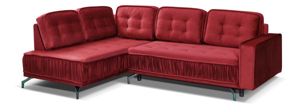 Rohová sedačka Variana (červená) (L) vás zahrne do svého objetí a nabídne vám maximální pohodlí během odpočinku. Sedačka má prošívané opěradlové polštáře a sedací část, které ji dělají elegantní a sofistikovanou. Je vybavena kovovými nohama, které jí zajišťují oporu. Pro případ, že potřebujete místo ke spaní, můžete ji jednoduše rozložit. Kromě toho má také praktický úložný prostor na ložní prádlo a jiné doplňky. Konstrukce sedačky je z nábytkové desky a masivního dřeva. Sedací část obsahuje falisté pružiny a vysokoelastickou pěnu T30. Sedačka se rozkládá typem DL a má výšku sedu 44 cm, hloubku sedu 56 cm a výšku opěradla 44 cm. Plocha na spaní má rozměry 216x120 cm. K montáži kovových nohou je zapotřebí nářadí. Sedačka má také ozdobné šití, dekorativní prvky a je čalouněná.