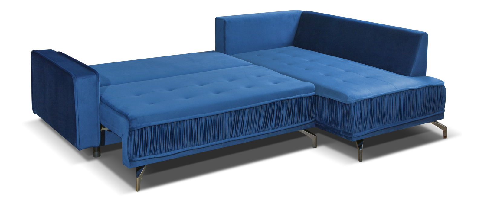 Rohová sedačka Variana (tmavě modrá) (P) o výšce 89 cm, hloubce 180 cm a délce 251 cm je ideálním nábytkem pro ty, kteří hledají pohodlí a praktičnost. Sedačka je vyrobena z kvalitního látkového materiálu a má praktický úložný prostor. Je orientována na pravou stranu a má elegantní tmavomodrou barvu, která se hodí do každého interiéru. Výplň sedačky je z vysoce elastického pěny T30 a pružin Faliste, což zaručuje maximální komfort při sezení. Sedačka lze rozložit na rozkládací plochu s plochou spaní 216x120 cm, což umožní hostům pohodlné přenocování. Sedačka Variana je dokonalým spojením pohodlí a funkčnosti do vašeho interiéru. Nábytková deska a masivní dřevo tvoří konstrukci sedačky. Sedačka má typ rozkladu DL a výšku sedu 44 cm, hloubku sedu 56 cm a výšku opěradla 44 cm. Kromě toho, k montáži kovových nohou je zapotřebí nářadí. Sedačka má také ozdobné šití, dekorativní prvky a je naprosto čalouněná.