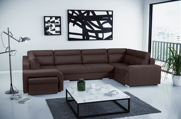 Rohová sedací souprava ve tvaru U Alfredo U (tmavě hnědá) (L)