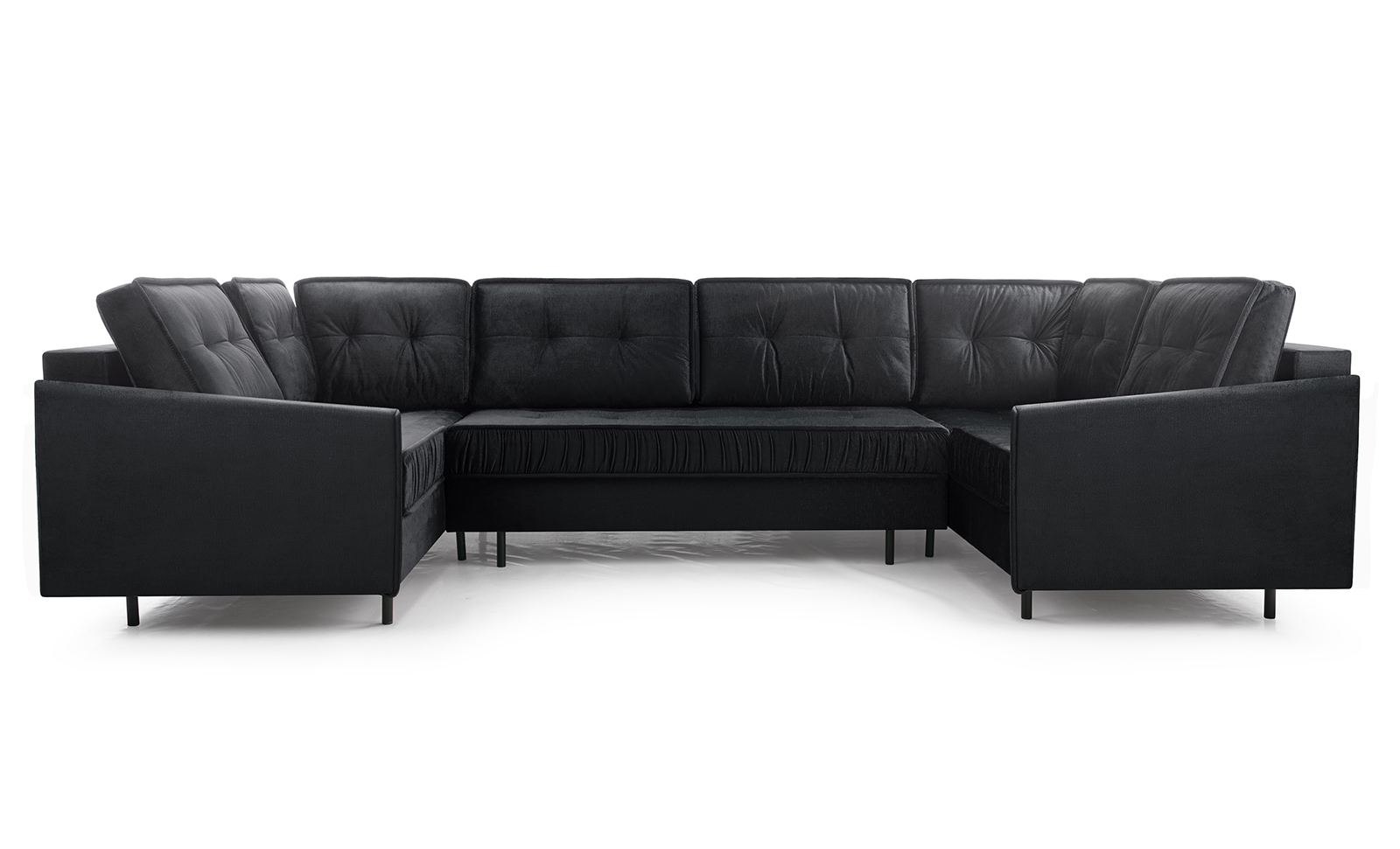Pokud potřebujete více prostoru k sezení v obývacím pokoji, tato sedačka ve tvaru do U Vás rozhodně nezklame. Má přitažlivý elegantní design a zároveň i praktické funkce, které zajisté oceníte. Sedačku umíte rozložit a získat tak plochu na spaní. Sedačka je čalouněná i zezadu, a proto si ji můžete umístit i do prostoru. Sedačka stojí na kovových nohách.