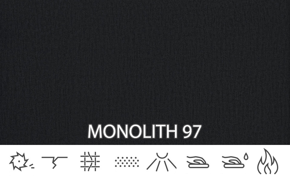 Monolith je odolná plyšová látka, která je příjemná na dotek. Je pokryta speciální ochrannou vrstvou, která vytváří hydrofobní vrstvu, která chrání před rychlým vstřebáním rozlitých tekutin. Je vysoce odolná proti vyblednutí a žmolkování. Látka se vyznačuje stínováním materiálu. Lze ji čistit prostředky pro ošetřování čalounění. Neměla by se bělit a vystavovat nadměrně vysokým teplotám – nesušit v sušičce.
