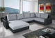 Rohová sedací souprava ve tvaru U Banno (světle šedá + černá) (P)