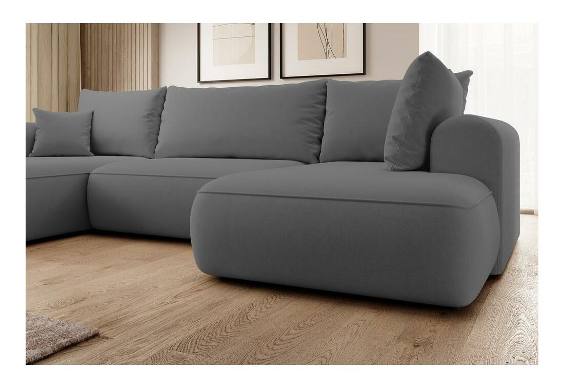 ZobrazitChcete vytvořit módní relaxační prostor, kde se moderní trendy setkávají s pohodlím? Potom naše rohová sedací souprava ve tvaru U jistě splní všechna vaše očekávání Rohová sedací souprava ve tvaru U je kus nábytku, který dokonale zapadá do současných trendů interiérového designu. Díky jednoduché struktuře a zaobleným tvarům se perfektně hodí do většiny aranžmá a svým vzhledem a pohodlím potěší vaše přátele a blízké. Díky tomu, že v sedadle jsou pružiny Bonnell a v opěradle vlnová pružina, je tento kus nábytku mimořádně pohodlný a určitě se vám nebude chtít vstát. se navíc díky funkci DL skládání lze snadno přeměnit na pohodlnou postel, ve které snadno přespíte přes noc své blízké. Veškerý textil můžete uložit do kontejneru na ložní prádlo, který je standardem pro rohovou sedačku Pokud se vám líbí design rohové sedačky, určitě si prohlédněte i další nábytek z této kolekce: Rohová sedačka ve tvaru U, pravý nábytek (delší otoman je umístěn na pravé straně ), volně stojící model, tj. s čalouněným opěradlem, funkce na spaní typu DL umožňuje velmi rychlé rozložení rohové sedačky, standardně kontejner na lůžkoviny, černá nohy, nábytek čalouněný látkou Castel 93 v tmavě šedé barvě, Castel je měkká, hladká látka vyznačující se vysokou odolností proti tření, oděru a žmolkování, díky čemuž je ideální pro každodenní nábytek. Další výhodou je Easy Clean Technology – materiál se snadno čistí, což umožňuje snadné odstranění nečistot s trochou vody a měkkým hadříkem.