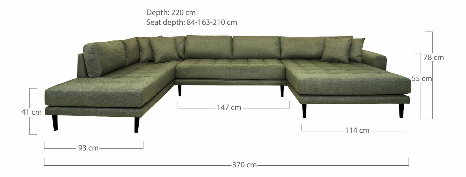 Rohová sedací souprava ve tvaru U (P) Lvaveriaora U (olivově zelená)
