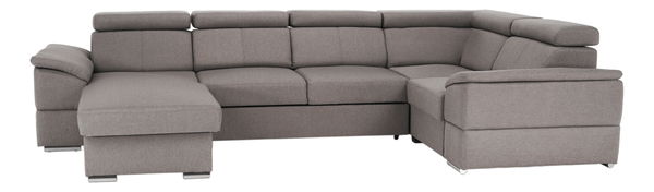 Pohodlná, masívna sedačka. Príjemný materiál. Nastaviteľné hlavové opierky. Veľká plocha na spanie alebo sedenie s vyloženými nohami pre 4-5 ľudí po rozložení.