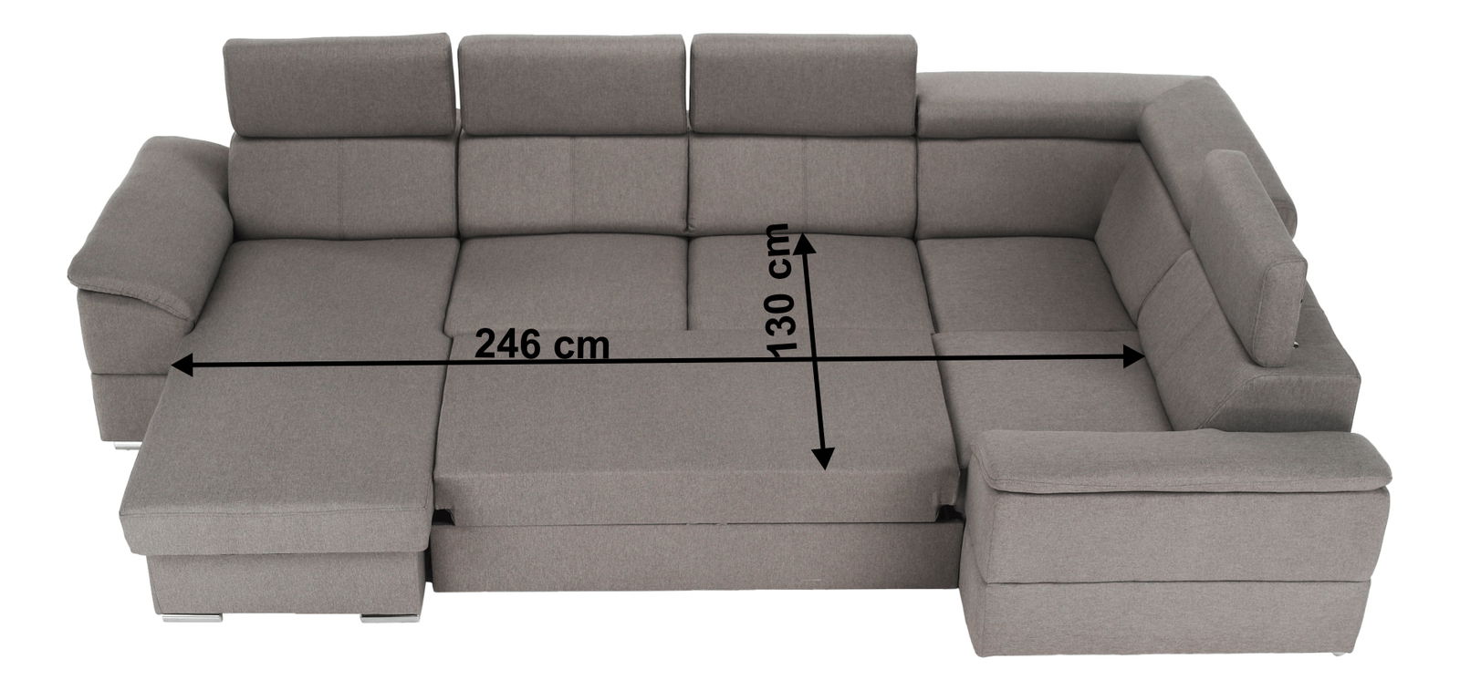 Rohová sedačka ve tvaru U Seglaria (šedohnědá) (L) o výšce 79 cm a hloubce 183 cm je ideální pro ty, kteří hledají komfortní a praktické řešení pro svůj obývací prostor. Polohovací opěrky hlavy jsou skutečnou lahůdkou pro vaše ztuhlé svaly a jsou k dispozici až v šesti stupních. Segoria disponuje také úložným prostorem, takže nebudete muset zbytečně zabírat místo pro vaše věci. Sedačka je rozkládací a poskytuje pohodlný spánek pro dva lidi, s plochou na spaní o velikosti 130x246 cm. Materiálem je látka Malmo v šedohnědé taupě barvě. Výška sedačky se zvednutými opěrkami je 97 cm, výška sedu je 43 cm a hloubka sedu 56 cm. Sedačka má také dostatek prostoru pod sebou, s výškou spodního prostoru od podlahy 4,5 cm. Sedačka je celočalouněná a má levé provedení. Výplň sedací části tvoří pružina Falista. Sedačka je dodávána v demontu, ale její sestavení je jednoduché a rychlé.